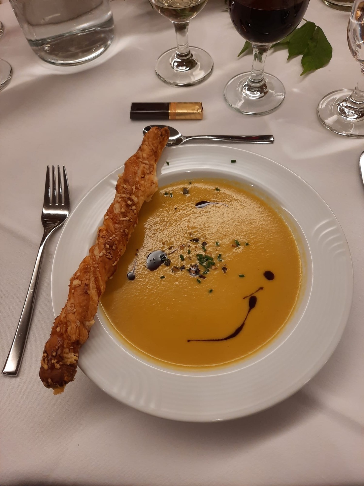 Nach dem Begrüssungsapéro wurde kulinarisch einiges geboten: Den Auftakt machte eine feine Kürbissuppe mit einem würzigen Käsezwirbel. Als Hauptgang folgte ein herbstliches Duett vom Steinweidrind – saftige Hacktätschli und rosa gebratene Huft, serviert mit Kartoffelstampf, buntem Herbstgemüse und feinem Jus. Abgerundet wurde das Menü mit einem Zwetschgen-Tiramisu im Glas.